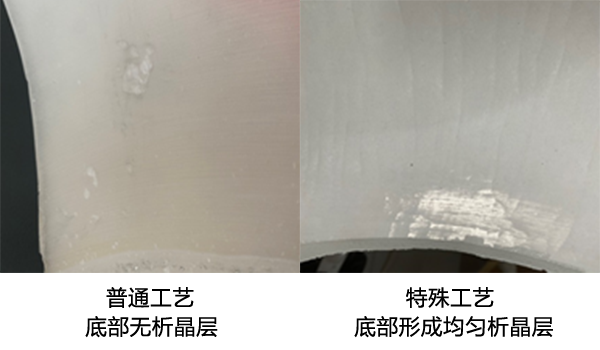 摻鎵坩堝,顧名思義,即針對(duì)摻鎵工藝單晶硅生長(zhǎng)用石英坩堝,其在多次拉晶過(guò)程中,可提高引晶成功率、降低收尾位錯(cuò)以及降低硅棒氧含量,相對(duì)于普通工藝的石英坩堝而言,有更加優(yōu)秀的表現(xiàn),同時(shí)也彌補(bǔ)了摻鎵工藝單晶硅拉制過(guò)程中需要在石英坩堝內(nèi)摻入鋇粉帶來(lái)的缺點(diǎn)。